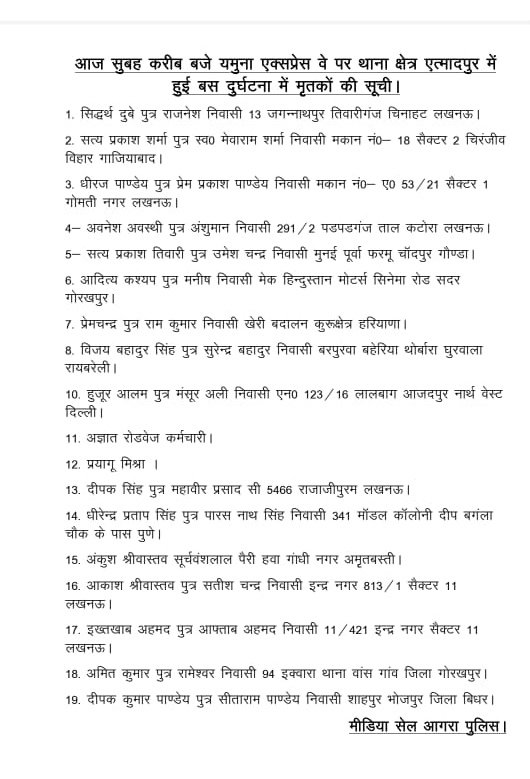 आगरा बस दुर्घटना अपडेट