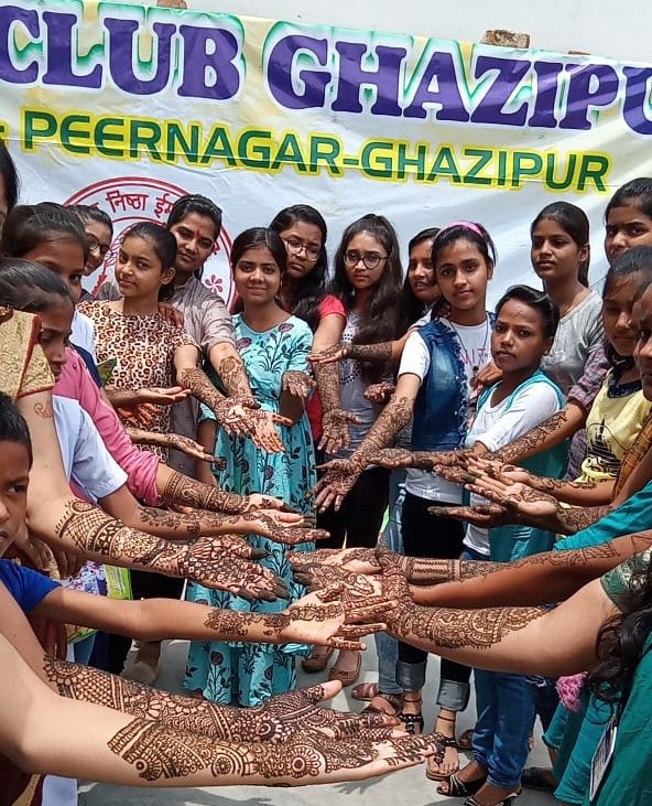 मेंहदी प्रतियोगिता में बालिकाओं ने दिखाये हुनर