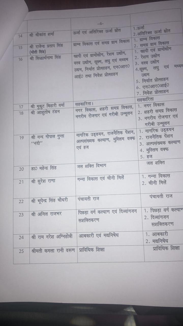 उ.प्र. मंत्रीमंडल ! मंत्री व उनके विभाग