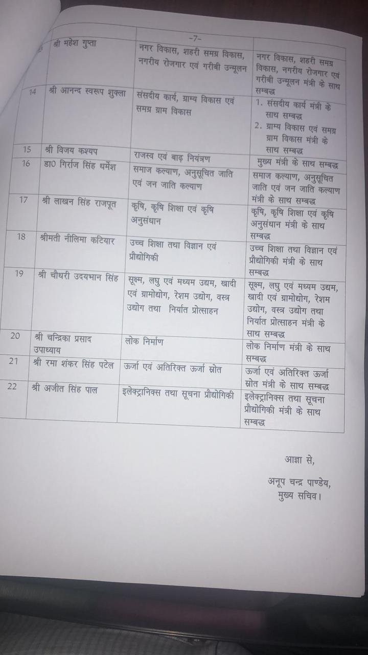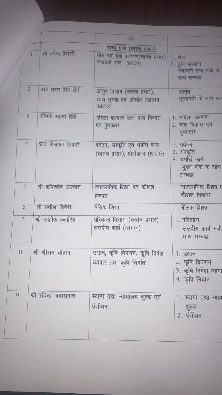 स्वतंत्र प्रभार मंत्रीउपेंद्र तिवारी – स्वतंत्र प्रभार खेल विभाग,
