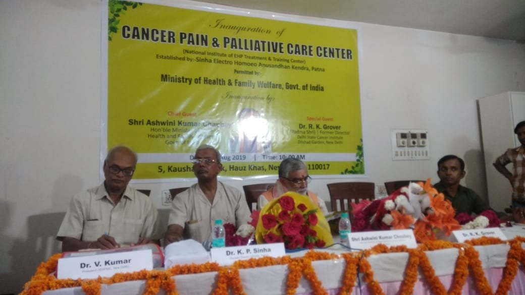 नई दिल्ली,23 अगस्त 2019। देश की राजधानी नई दिल्ली के हौज खास में सिन्हा इलेक्ट्रो होम्यो अनुसंधान केंद्र,पटना द्वारा देश के प्रमुख केंद्र के रूप में स्थापित देश के प्रमुख कैंसर पैन एंड पैलिएटिव केयर सेंटर का उद्घाटन आज मुख्य अतिथि केंद्रीय स्वास्थ्य एवं परिवार कल्याण राज्य मंत्री अश्विनी कुमार चौबे द्वारा किया गया।