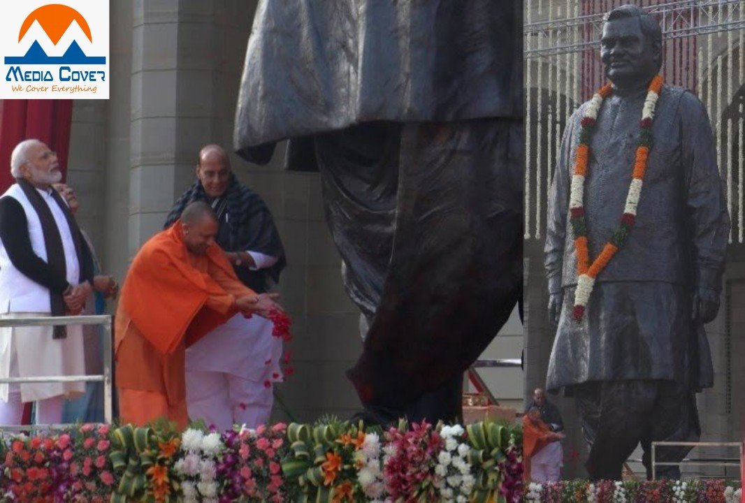 लोक भवन में पूर्व प्रधानमंत्री अटल बिहारी बाजपेई की 25 फीट ऊंची कांस्य प्रतिमा का अनावरण प्रधानमंत्री नरेंद्र मोदी द्वारा किया गया। इस प्रतिमा को बनाने में 89 लाख रुपए का खर्च आया है। इस अनावरण समारोह में लखनऊ के सांसद राजनाथ सिंह, राज्यपाल, मुख्यमंत्री, उपमुख्यमंत्री और प्रदेश के मंत्रीगण उपस्थित रहे।