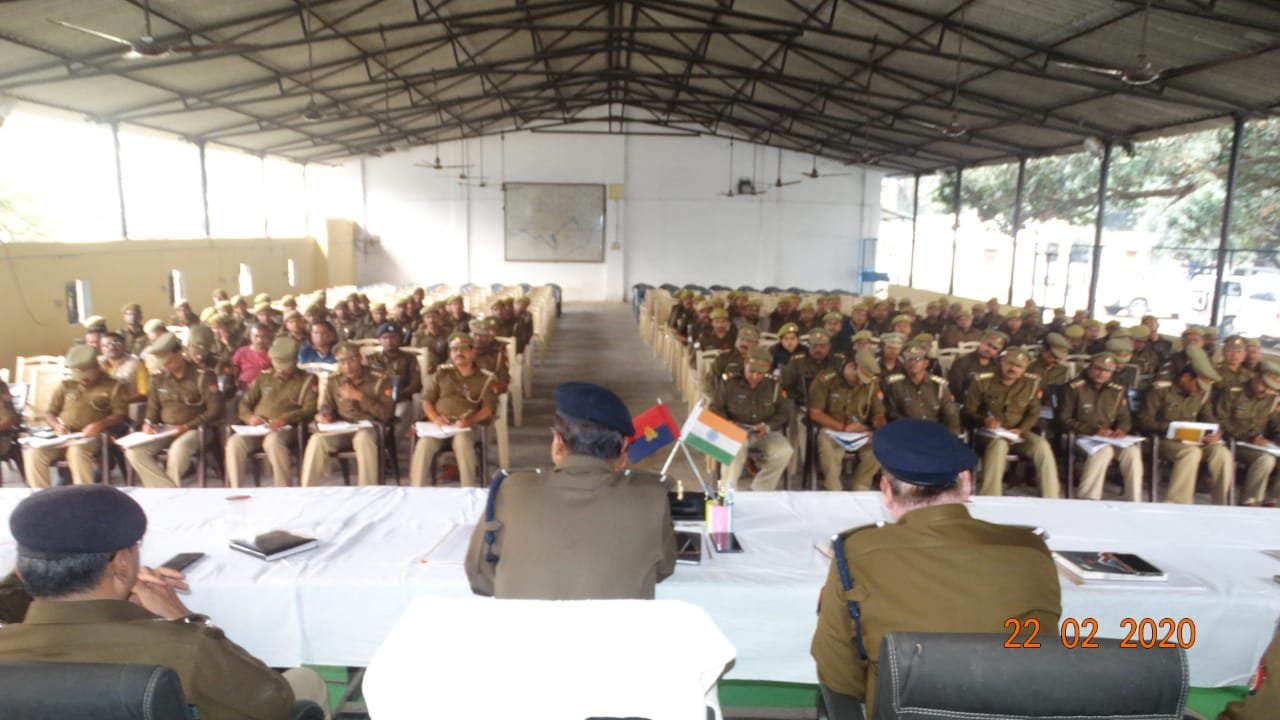 गाजीपुर,22 फरवरी 2020। पुलिस अधीक्षक डा.ओमप्रकाश सिंह द्वारा पुलिस लाइन में आज अपराध गोष्ठी व सैनिक सम्मेलन का आयोजन किया गया। सैनिक सम्मेलन के दौरान वहां पर उपस्थित अधिकारियों व कर्मचारियों की समस्याओं के बारे में विस्तार से जानकारी ली तथा निस्तारण हेतु संबंधित अधिकारी को निर्देशित किया गया।