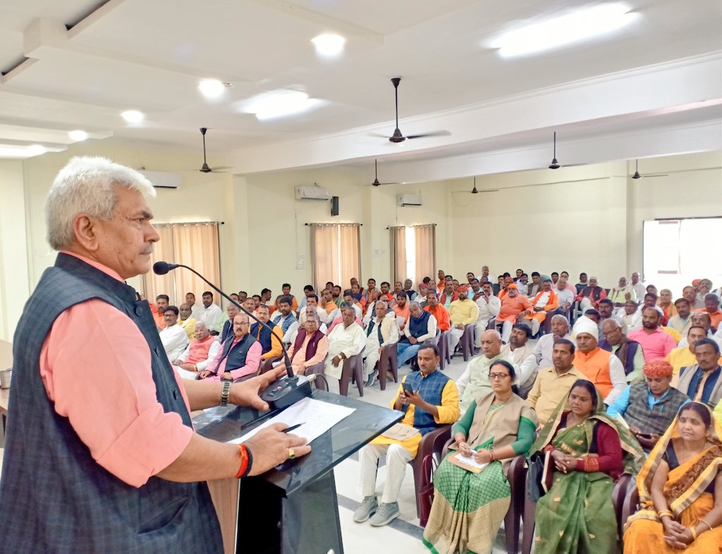 बैठक को सम्बोधित करते हुए पूर्व केन्द्रीय मंत्री मनोज सिन्हा ने कहा कि विगत छ: वर्षो में प्रधानमंत्री नरेन्द्र मोदी के नेतृत्व में जो कार्य हुआ है उसे प्रबल विरोधी भी मानता है। हमने जिस विचारधारा को लेकर कार्य की शुरुआत की उसके प्रति भाजपा को पूरे देश मे बडा़ जनाधार मिला है और यह जनाधार का स्थायीत्व कैसे बना रहे इसके लिए हमें लगातार संगठनात्मक रूप से कार्य करते रहना है। उन्होने कहा कि विचार धारा से प्रतिबद्ध संगठन बडे़ समूह तथा कार्य को आगे बढ़ाता है। पूर्व केन्द्रीय मंत्री ने भारतीय जनता पार्टी के विचार धारा की नीतियों की चर्चा में आपात काल के दौरान पार्टी के त्याग का वर्णन करते हुए कहा कि भारतीय जनता पार्टी ऐसी विचारधारा की पार्टी है जिसने राष्ट्रहित के लिए पार्टी हितों की भी कुर्बानी दी है। कहा कि हमारे कार्यो के कारण हमारा कार्यकर्ता आज दुविधा मुक्त हो चुका है। हमारी पहचान है कि हम जो कहते है वही करते है। आज धारा 370, 35 ए को लेकर सरकार द्वारा किये गये कार्य से भारतीय जनता पार्टी के कार्यकर्ताओं का मस्तक गर्व से ऊंचा तथा सीना चौडा हो गया है।