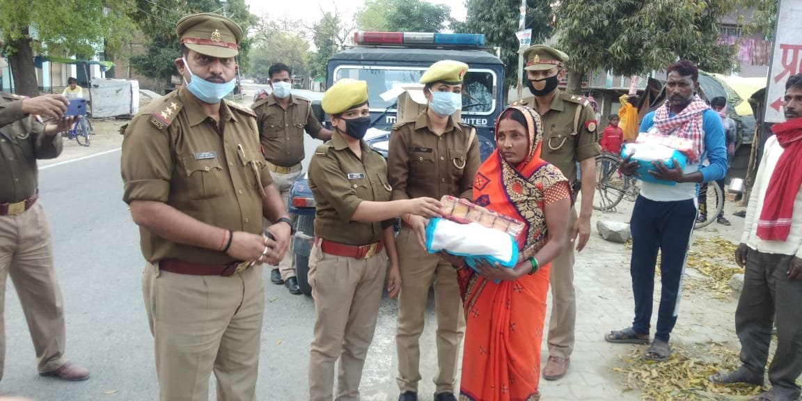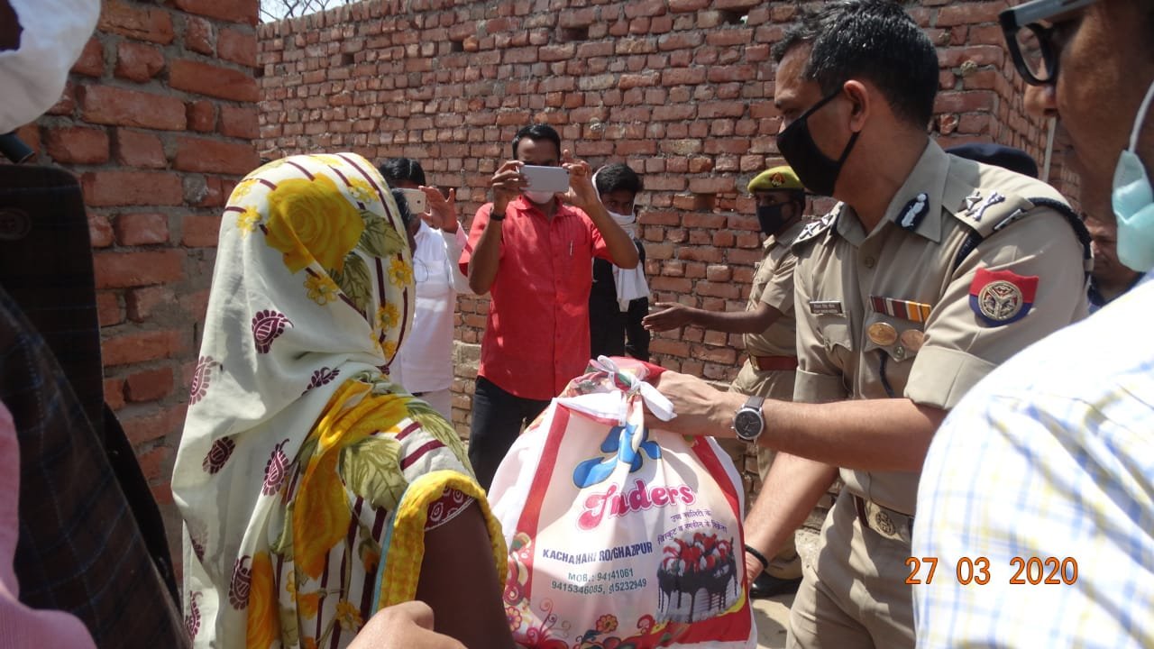 इसी क्रम में अपर पुलिस अधीक्षक नगर, क्षेत्राधिकारी नगर, प्रभारी निरीक्षक कोतवाली द्वारा मजदूरों के बीच खाद्य सामग्री वितरित किया गया। दिलदार नगर थाना क्षेत्र की पूनम पत्नी अमित द्वारा 112 नम्बर पर फोन करके बताया गया कि हमारे पास खाने के लिए कुछ भी नही हैं। हमारे पति गांवो में फेरी का काम करते हैं, पैसा भी समाप्त हो गया हैं। इस सूचना पर तत्काल कारर्वाई करते हुए प्रभारी निरीक्षक दिलदारनगर द्वारा आटा, चावल, दाल,तेल, नमक, सब्जी व साबुन पीड़ित परिवार तक पहुंचाया।