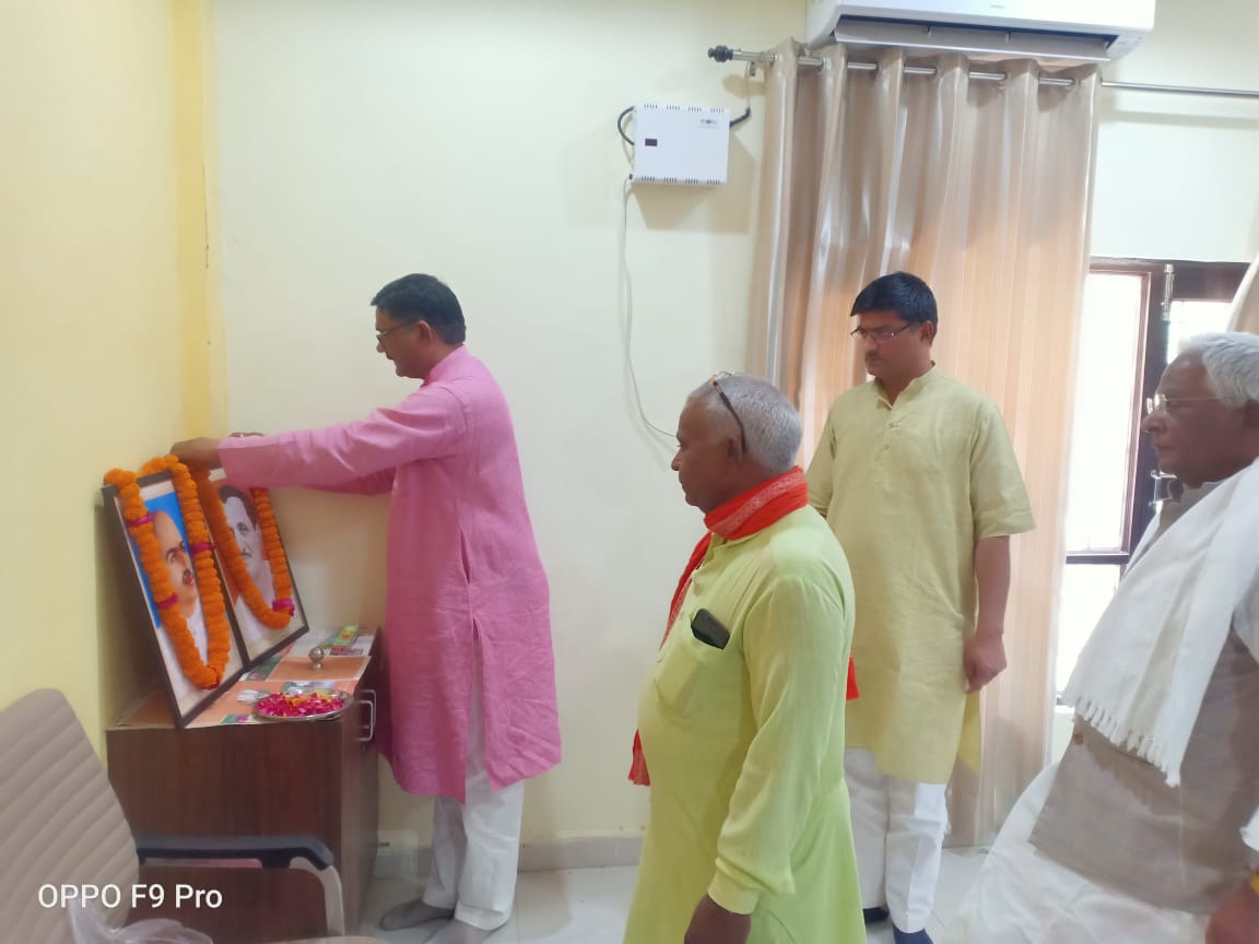 गाजीपुर,06 अप्रैल 2020।भारतीय जनता पार्टी के ४० वें स्थापना दिवस पर आज सोमवार को भारतीय जनता पार्टी जिला कार्यालय पर जिला अध्यक्ष भानु प्रताप सिंह के अध्यक्षता में पार्टी ध्वज लगाकर तथा महामनिषीयों पं दीनदयाल उपाध्याय और डा श्यामा प्रसाद मुखर्जी के चित्र पर माल्यार्पण और पुष्पांजलि अर्पित कर की गई।