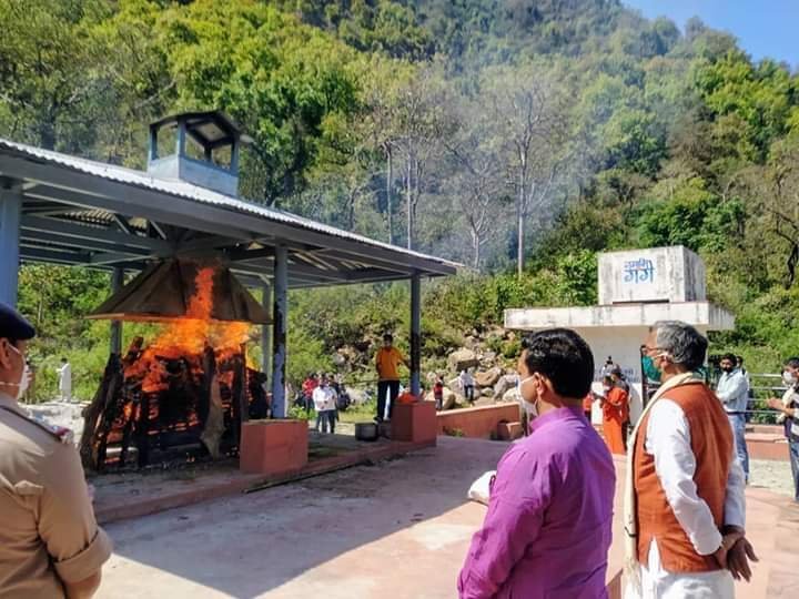 ऋषिकेश,21 अप्रैल 2010। उत्तर प्रदेश के मुख्यमंत्री योगी आदित्यनाथ के पिता व गुरु गोरखनाथ महाविद्यालय विठ्यनी यमकेश्वर के संस्थापक आनंद सिंह बिष्ट का पार्थिव शरीर दाह संस्कार के लिए आज लक्ष्मण झूला नीलकंठ मार्ग पर गरुड़ चट्टी पुल से करीब पांच किलोमीटर आगे फूल चट्टी गंगा तट पर लाया गया जहां शास्त्रोक्त विधि विधान के साथ दाह संस्कार किया गया। मुखाग्नि उनके ज्येष्ठ पुत्र मानेंद्र सिंह बिष्ट ने दी।