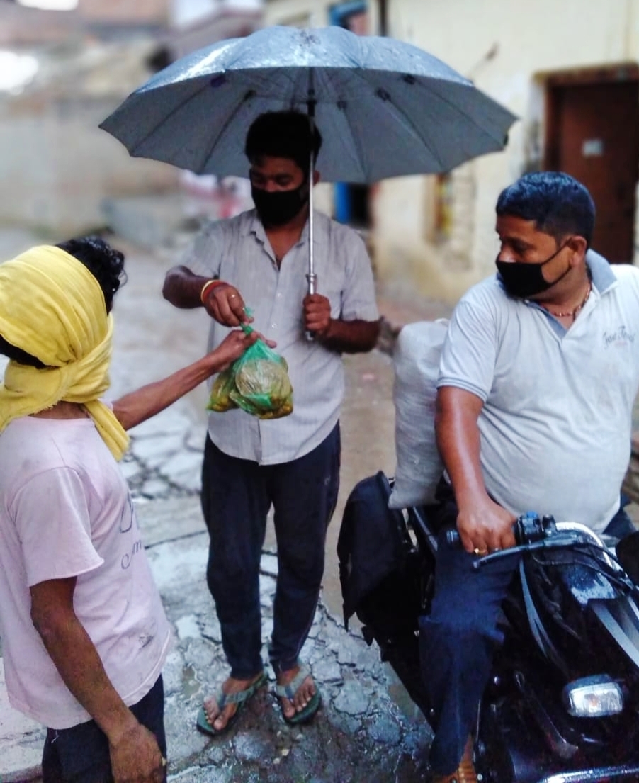 गाजीपुर,29 अप्रैल 2020। लाकडाउन के दौरान सुबह-शाम दोनो वक्त जरूरतमंदो की मदद में लगे कोरोंना योध्दाओं के कदम को तेज बारिश व आँधी तूफान भी नहीं रोक पाई, सायंकालीन भोजन वितरण में लगे वालंटियर्स के सामने एक तरफ जहाँ कल की शाम प्रतिकूल मौसम चुनौती बनकर खड़ी थी तो वहीं दूसरी तरफ जरूररतमंदो की चिंता ने तमाम कठिनाइयों के बावजूद कर्मवीर साथियों को छतरी के साथ भोजन लेकर सड़क पर निकलने को विवश कर दिया। पूर्व धर्मार्थ कार्य मंत्री विजय कुमार मिश्र ने अपने आवास से संचालित हो रहे भोजन वितरण कार्यक्रम के आज इक्तीसवें दिन कहा कि इनके कार्य से मुझे एक नई उर्जा मिलने के साथ ही जो सुखद अनुभूति हुई हैं उसे मै शब्दो में व्यक्त नहीं कर सकता। इनके समर्पण व निष्ठा के साथ सेवा कार्य व अनूठे जज़्बे को मैं दिल से सलाम करता हूँ।