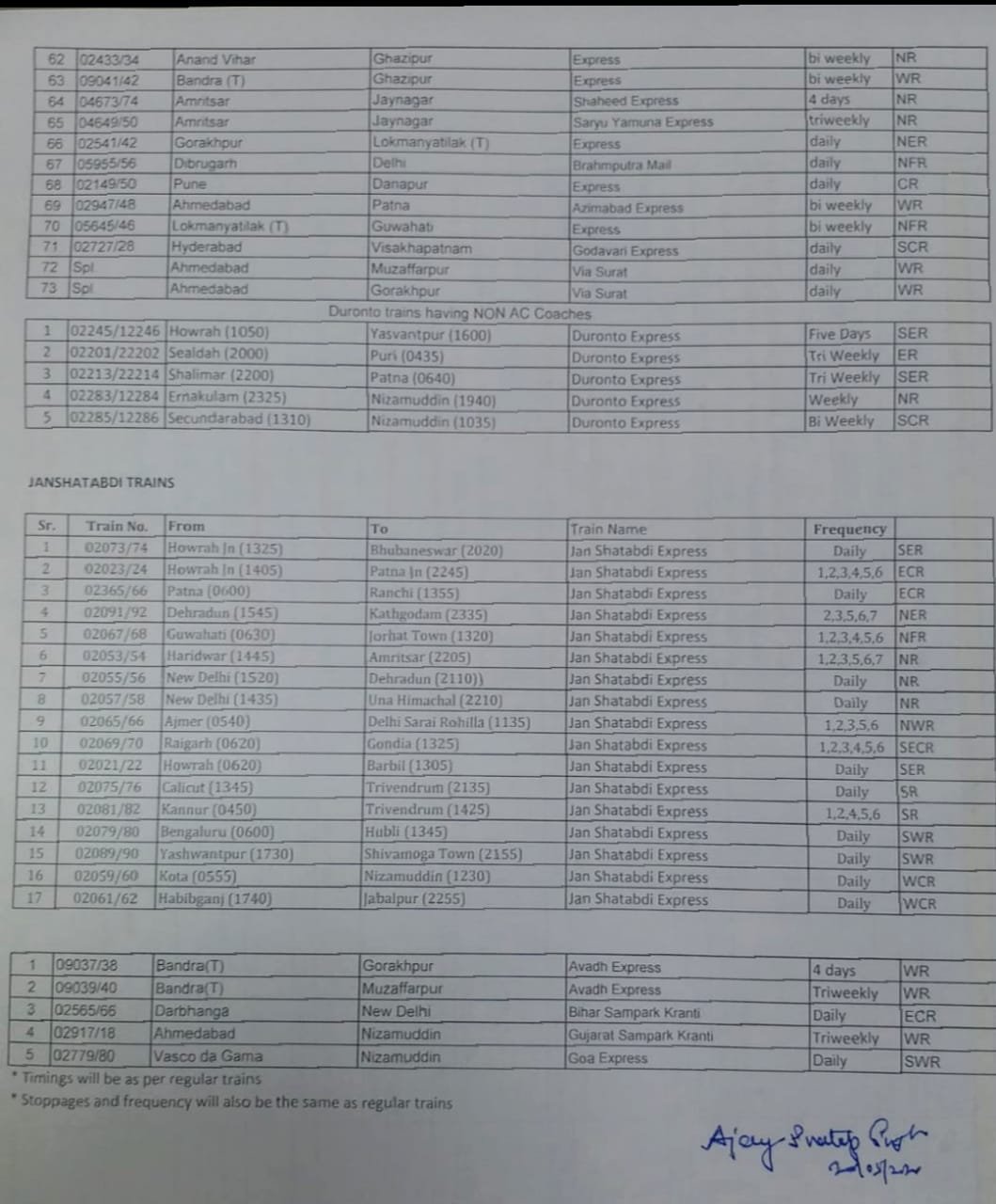 These special services shall be in addition to the existing Shramik special trains being run since 01st May and Special AC trains (30 trains) being run since 12th May 2020.
