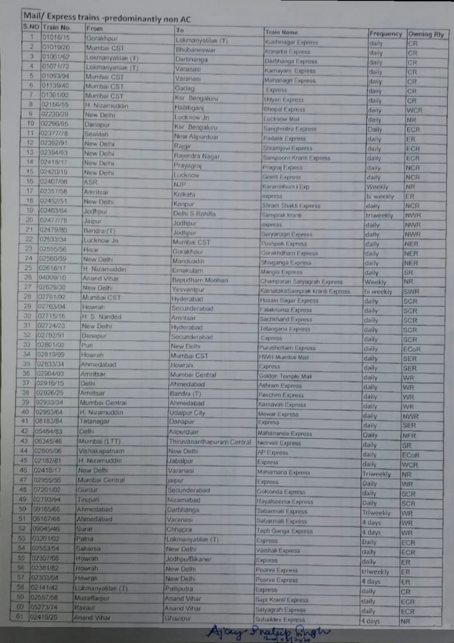 Booking of all these trains will commence from 10 am on 21/05/20.