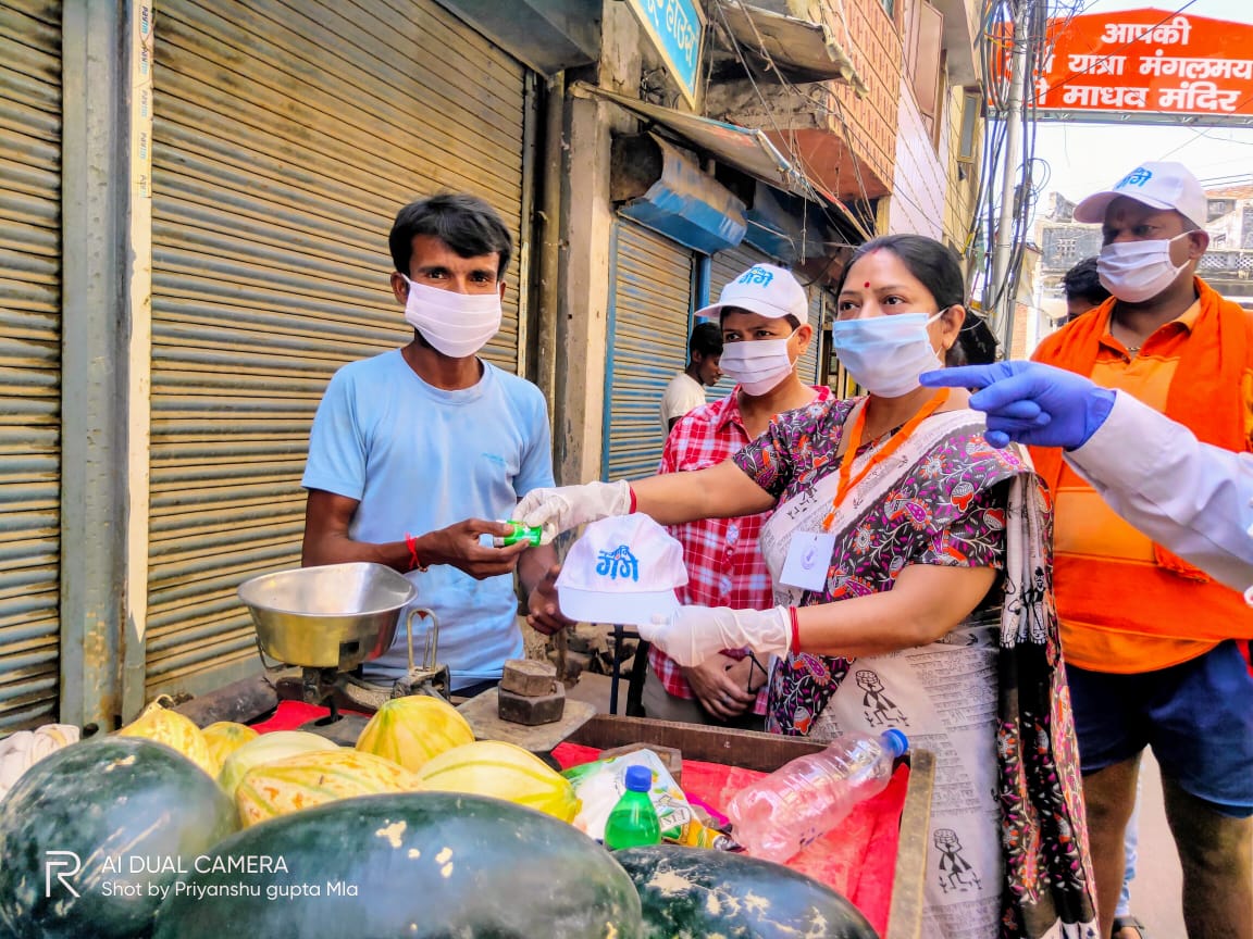 अनामिका चौधरी ने कहा कि कोरोना से बचने के लिए मास्क लगाना अनिवार्य है, समय- समय पर हाथों को साबुन से धुलते रहे। धूप बहुत तेज़ हो रही है,अतः सिर पर टोपी व गमछा जरुर रखें! उन्होंने सब्जी विक्रेताओं से कहा कि बिना मास्क वालों को सब्जी की बिक्री न करें। वरिष्ठ समाज सेवी आकाश शुक्ला तथा उनके सुपुत्र ने सभी को मास्क और कोरोना से बचाव के पंपलेट बांटें तथा साथ में सजल अग्रवाल ने सभी को साबुन के पैकेट भी वितरित किये और सभी खरीददारों से मास्क, सेनेटाईजर का प्रयोग करने का आग्रह किया गया। उक्त अवसर पर नीलम शुक्ला, जितेंद्र शुक्ला, अमन कुमार,सुमन बाला, कैप्टन सुनील निषाद, दिनेश श्रीवास्तव आदि मौजूद रहे।