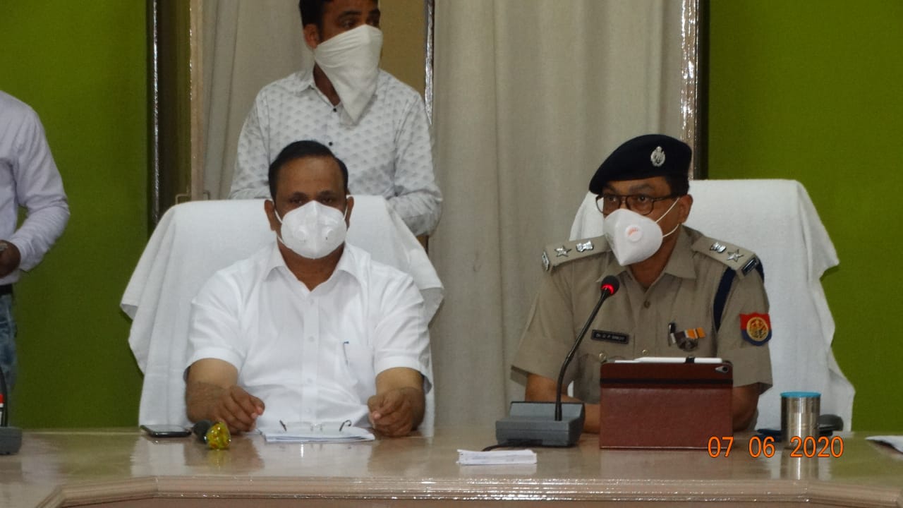 गाजीपुर, 07 जून 2020। धार्मिक स्थलों, रेस्टोरेंट, होटल और शॉपिंग मॉलों के खोले जाने के सम्बन्ध में लागू हो रहे नए दिशा निर्देशों के मद्देनजर जिलाधिकारी ओमप्रकाश आर्य तथा पुलिस अधीक्षक डा.ओमप्रकाश सिंह द्वारा, राइफल क्लब सभागार में, विभिन्न धर्मों के धर्मगुरुओं, व्यापार मंडल के पदाधिकारियों, शहर के संभ्रांत लोगों तथा अधिकारियों के साथ बैठक कर आवश्यक दिशानिर्देश व जानकारी दी।
