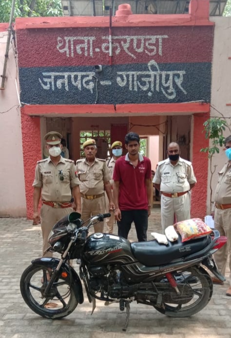 बताया गया है कि पुलिस टीम ने रात में चांड़ीपुर तिराहे से वाहन चेकिंग के दौरान एक बाइक को रोका। संदिग्ध लगने पर जब चालक की तलाशी ली गयी तो चालक के पास से एक चमंचा मय कारतूस तथा दो किलोग्राम अवैध गांजा संग बरामद किया। वाहन भी चोरी की निकली। गिरफ्तार अभियुक्त कल्लू उर्फ अफरोज