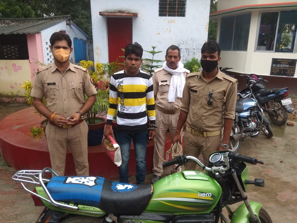 बताया गया कि उपनिरीक्षक मनोज तिवारी अपने हमराहियों के साथ धर्मागतपुर में वाहन चेकिंग कर रहे थे। तभी एक युवक बाईक लेकर भागने लगा। पुलिस ने दौड़ा कर उसे अपनी गिरफ्त में ले लिया। गिरफ्तार अभियुक्त अब्दुल उर्फ चुम्मन नट थाना क्षेत्र के नायकडीह हाल्ट का निवासी है। पूछताछ करने पर बाइक चोरी की निकली। पुलिस ने विधिक धाराओं में मुकदमा दर्ज कर जेल भेज दिया। वाहनचोर को गिरफ्तार करने वाली पुलिस टीम में उपनिरीक्षक मनोज तिवारी व आरक्षीगण सौरभ पटेल व कुलदीप पटेल शामिल रहे।