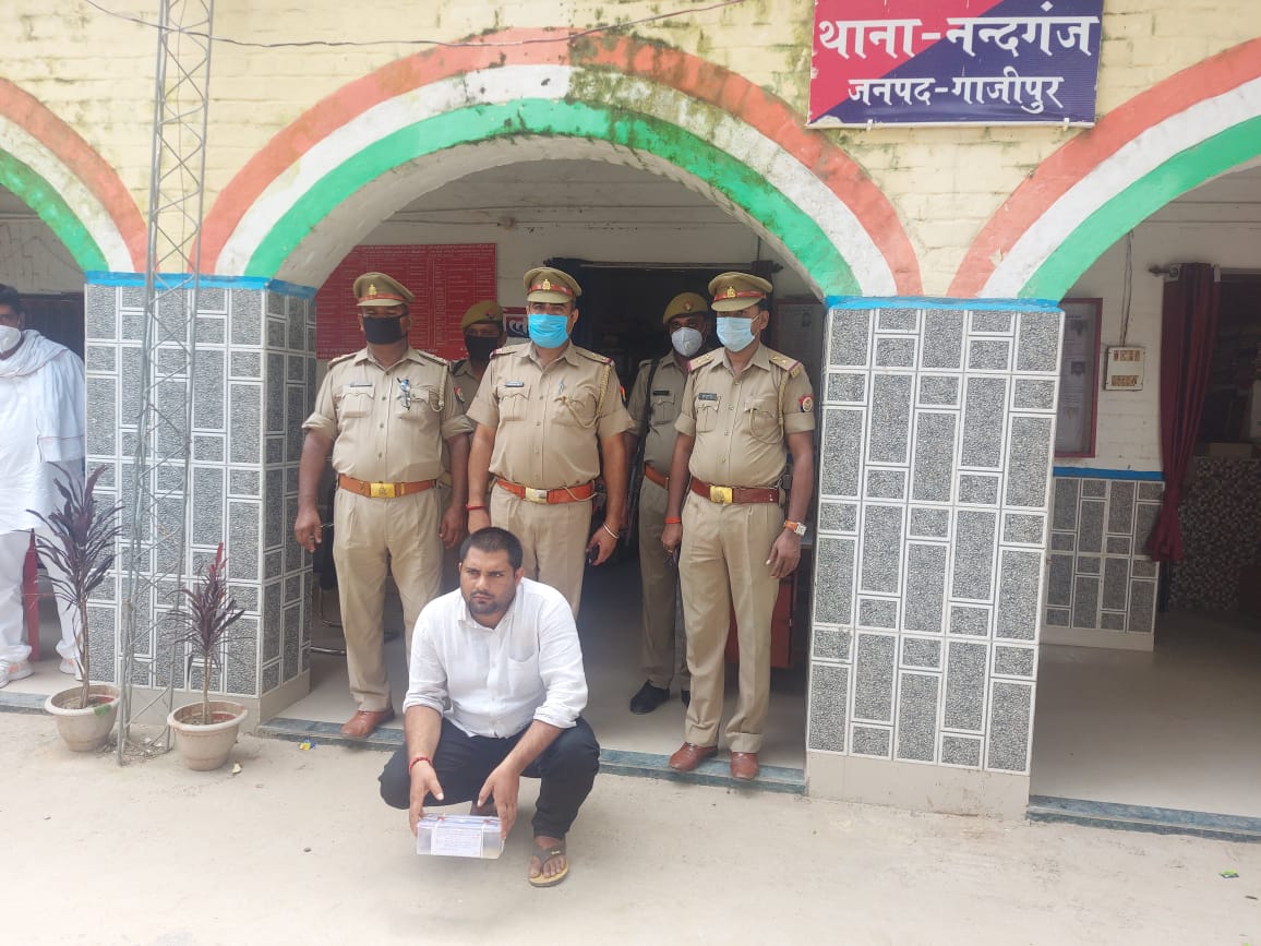 गाजीपुर। नंदगंज थाना पुलिस ने 15000 के इनामियां शातिर टॉप टेन अपराधी को अवैध तमंचे के साथ गिरफ्तार करने में सफलता पाई है। गिरफ्तार शातिर अपराधी जितेंद्र सिंह यादव पुत्र रामचरण यादव सदर थाना कोतवाली क्षेत्र के चक दराव का निवासी है। पुलिस ने शातिर अपराधी को कल रात क्षेत्र के तलवल से गिरफ्तार कर उसके कब्जे से 303 बोर तमंचा व दो कारतूस बरामद किया है। पुलिस सूत्रों से बताया गया है कि गिरफ्तार अभियुक्त गत 7 मार्च को रात 10:30 बजे अपने मित्र प्रिंस उर्फ पहलवान यादव निवासी नारायणपुर थाना करंडा, अमरीश बिंद निवासी अहिरौली थाना कोतवाली सदर, धनंजय बिंद निवासी चकदराव कोतवाली सदर के साथ मिलकर फतेउल्लहपुर रिलायंस पेट्रोल पंप के पास से एक व्यक्ति को जबरन रोक कर उसकी मोटरसाइकिल और मोबाइल छीन लिए थे। अमरेश ने मोबाइल बेचने का काफी प्रयास किया पर मोबाइल नहीं बिका। इसी बीच उन्होंने मोटरसाइकिल भी बेचने का प्रयास किया परन्तु लाकडाउन के कारण उनकी मोटरसाइकिल भी बिक न सकी। इसके बाद लुटेरों ने नंबर प्लेट परिवर्तन कर दिया था। बाद में गत 5 मई 2020 को पुलिस ने पहलवान यादव व अमरेश बिंद को मोटरसाइकिल व छीनी गई मोबाइल के साथ गिरफ्तार किया था। उस दौरान जितेंद्र तथा धनंजय पुलिस की पकड़ में नहीं आए थे और तभी से इधर उधर छिप कर रह रहे थे। जितेंद्र ने बताया कि धनंजय ने उसे मिलने के लिए बुलाया था उसके बुलावे पर वह तलवल पहुंचकर उसका इंतजार कर रहा था तभी पुलिस ने उसे गिरफ्तार कर लिया। पुलिस सूत्रों से मिली जानकारी के अनुसार इस शातिर अपराधी पर तीन मुकदमे विचाराधीन है। पुलिस ने गिरफ्तार अभियुक्त के विरुद्ध विधिक कार्रवाई करते हुए उसे जेल भेज दिया। शातिर अपराधी को गिरफ्तार कर उसके कब्जे से तमंचा बरामद करने वाली पुलिस टीम में थानाध्यक्ष राकेश कुमार सिंह, उप निरीक्षक सुरेश कुमार मौर्य, आरक्षी अजय गुप्ता,कासिम सिद्धकी व अजय कुमार शामिल रहे।