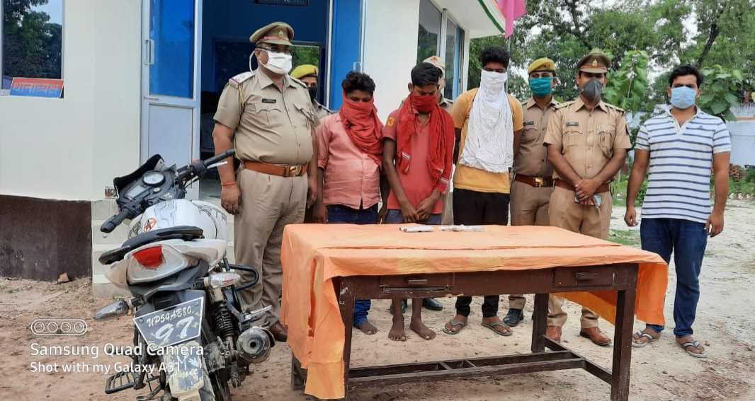 गिरफ्तार अभियुक्त अखिलेश यादव 23 वर्ष पुत्र राम अवध यादव मकदुमपुर थाना भुड़कुड़ा जनपद गाजीपुर, सरोज मुसहर उम्र करीब 22 वर्ष पुत्र स्व० राजदेव मुसहर निवासी अलीपुर मदरा थाना भुडकुड़ा जनपद गाजीपुर तथा चन्दन यादव उम्र 18 वर्ष पुत्र हरिकेश यादव निवासी धमराव थाना दुल्लहपुर जनपद गाजीपुर को रात करीब 21.30 बजे गिरफ्तार कर लिया। इसमें अभियुक्त अखिलेश यादव के पास से एक तमन्चा मय कारतूस 315 बोर, अभियुक्त सरोज मुसहर के पास से लूट की एक अदद मोबाइल फोन रेडमी कम्पनी बरामद हुआ जो थाना स्थानीय पर पजीकृत मु0अ0स0 199/20 धारा 392 आईपीसी से सम्बन्धित था। अभियुक्त चन्दन यादव के पास से लूट मे प्रयोग की गयी मोटरसाइकिल अपाचे न. यूपी 54एबी 8097 बरामद हुई। पुलिस ने गिरफ्तार अभियुक्तों के विरुद्ध यथोचित कारर्वाई करते हुए जेल भेंज दिया।