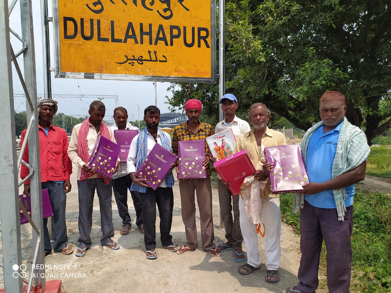 गाजीपुर। दुल्लहपुर रेलवे स्टेशन पर चल रहे रेलवे प्रोजेक्ट मे कामगार मजदूरों को इन्जीनियर एवं कंपनी कन्ट्रैक्टर अभिषेक चौबे द्वारा आस्था और विश्वास के कठिन ब्रत जिवत्पुत्रिका की पूर्व सन्ध्या पर स्टेशन परिसर मे सुख समृद्धि और मंगल कामना के साथ 50 मजदूरो के हाथो उनके घर की व्रती महिलाओ के लिए फल,मीठा, वस्त्र के साथ 201 रूपये नगद उपहार स्वरूप वितरण किया गया।मेहनतकश मजदूरो ने मजदूरी के अलावा नि:शुल्क सुखद उपहार पाकर अपनी खुशी का इजहार करते हुए अभिषेक चौबे एवं कम्पनी परिवार के प्रति आभार व्यक्त किया। इस मौके पर इंजीनियर अभिषेक चौबे मुकेश ,अखिलेश, सुधीर,संदीप ,राजेश निषाद, नीरज कुशवाहा, छोटे लाल पाल, राजेश निषाद, रमाशंकर चौहान, दिनेश चौहान, रामकृत चौहान, सुरेश निषाद, सूरज चौहान, अमरजीत चौहान,रामसरेख चौहान,राम आशीष चौहान व देवेंद्र पाल आदि लोग उपस्थित रहे।