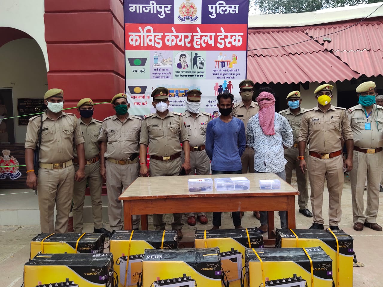 बताया गया कि कोतवाली पुलिस ने शाम को नगर क्षेत्र से दो अभियुक्तगणों मोहम्मद अरमान पुत्र शमीम निवासी वार्ड नं. 09 राजीव नगर कस्बा व थाना सैदपुर गाजीपुर तथा सतीश कश्यप पुत्र राजेन्द्र कश्यप निवासी वार्ड नं. 06 पक्का घाट कस्बा व थाना सैदपुर जनपद गाजीपुर को गिरफ्तार किया और उनके कब्जे से दो देशी तमन्चा 315 बोर मय जिन्दा कारतूस तथा चोरी की सात इनवर्टर बैटरी बरामद किया। छानबीन में गिरफ्तार दोनों अभियुक्तों के अतिरिक्त दो अन्य नाम भी प्रकाश में आये हैं जिनमें सूरज उर्फ झुन-झुन पुत्र राकेश निषाद उर्फ टेढई निवासी वार्ड न0 06 दीनदयाल नगर कस्बा व धाना सैदपुर जनपद गाजीपुर और इरफान रायनी उर्फ पिन्टू रायनी पुत्र मो० हसीन रायनी निवासी वार्ड न0 4 हमीद नगर हैं।