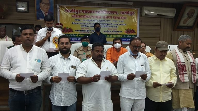 समारोह के विशिष्ट अतिथि जिलाधिकारी मंगला प्रसाद सिंह ने नव निवार्चित पदाधिकारियों को पद एवं गोपनीयता की शपथ दिलायी। इसके उपरांत जिलाधिकारी द्वारा अध्यक्ष विनोद कुमार पाण्डेय, वरिष्ठ उपाध्यक्ष शिवेश पाण्डेय, कनिष्ठ उपाध्यक्ष अभिषेक सिंह, महामंत्री चन्द्र कुमार तिवारी, कोषाध्यक्ष इंद्रासन यादव, आयव्यय निरीक्षक राममनोज त्रिपाठी को माल्यापर्ण कर शुभकामना व्यक्त की गयी।