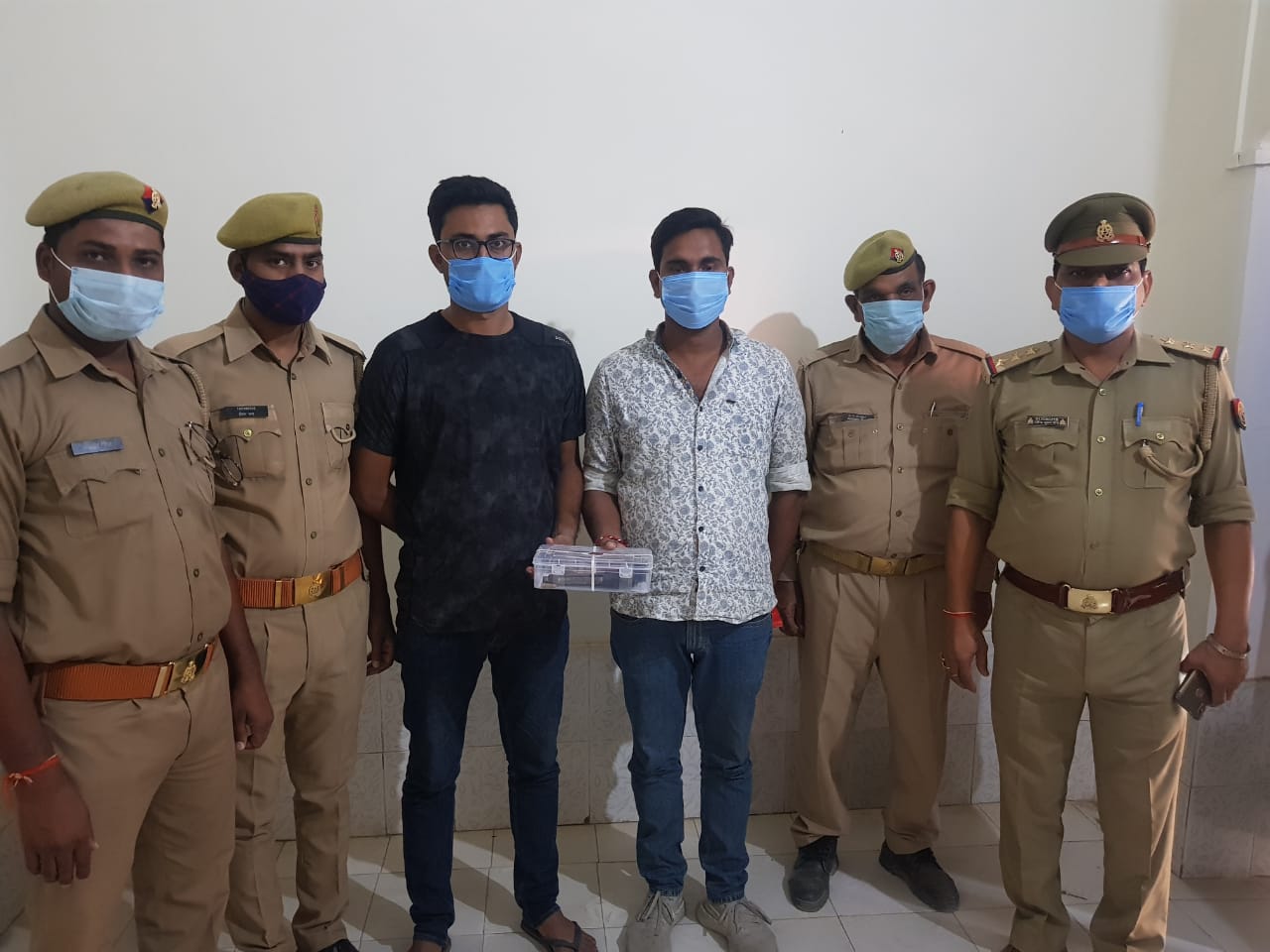 गिरफ्तार अभियुक्तों में गौरव सिंह उर्फ सन्नी सिंह पुत्र त्रिवेणी सिंह निवासी ग्राम भिलिहीली थाना तरवाँ जनपद आजमगढ़ तथा देवेन्द्र सिंह उर्फ चन्दन सिंह उर्फ देवेन्द्र प्रताप सिंह राणा पुत्र चन्द्रमोहन सिंह निवासी ग्राम मंगारी थाना सादात जनपद गाजीपुर हैं। दौराने गिरफ्तारी पुलिस ने इनके कब्जे से एक पिस्टल 9 एम एम मय दो कारतूस व एक सफेद कार आई-20 न. यूपी 54 एके 2706 बरामद किया है।