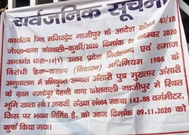 जिला प्रशासन ने आज सोमवार को सदर कोतवाली क्षेत्र के रजदेपुर में स्थित मुख्तार अंसारी