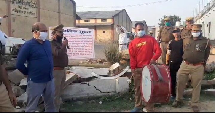 उल्लेखनीय है कि अपरांह करीब तीन बजे प्रशासनिक अधिकारी व पुलिस अधिकारी पुलिस बल के साथ नन्दगंज थाना क्षेत्र के फतेहउल्लाहपुर स्थित मेसर्स विकास कंस्ट्रक्शन पर पहुंचे और ढोल पिटवाकर मुनादी कराते हुए भूमि/भवन (गोदाम) को कुर्क करने की काररवाई की। कुर्की की काररवाई के दौरान सार्वजनिक सूचना का बैनर लगाया गया, जिस पर लिखा था जिला मजिस्ट्रेट के आदेश सं. 43/18 जे.ए. थाना कोतवाली, कुर्की 2020, दिनांक 05 नवम्बर अन्तर्गत दए, धारा 14 (1)उ.प्र. गिरोह बंद एवं समाज विरोधी क्रियाकलाप निवारण मे। अधिनियम 1986 के अनुपालन में सदर कोतवाली के मुहल्ला सैय्यदबाड़ा निवासी सरजील रजा उर्फ आतिफ रजा एवं अनवर शहजाद पुत्र जमशेद रजा तथा मुहम्मदाबाद कोतवली क्षेत्र के दर्जी टोला युसूफपुर निवासिनी अफसा अंसारी पत्नी मुख्तार अंसारी पार्टनर मे. विकास कंस्ट्रक्शन फतेहउल्लाहपुर के गाटा सं.341 रकबा 0.594हे., गाटा सं. 341रकबा0.898हे., गाटा सं. 341 रकबा 0.316हे., गाटा सं. 341 रकबा 0.492 हे., गाटा सं. 341 रकबा 0.759हे., गाटा सं. 341 रकबा 0.552 हे., भूमि /भवन (गोदाम) दिनांक ११ नम्बर को कुर्क किया गया है।