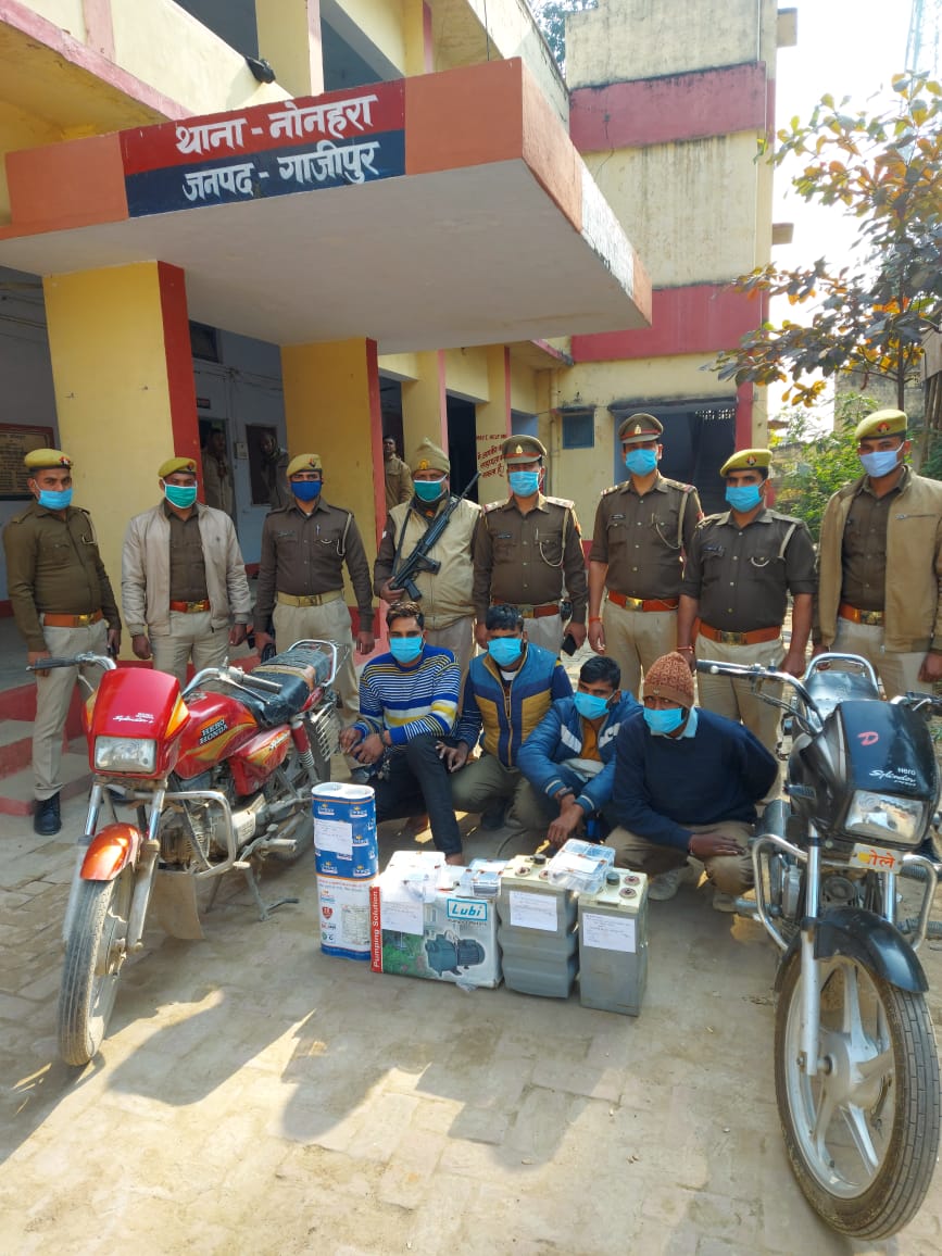 गाजीपुर। नोनहरा थाना पुलिस ने चोरी की घटनाओं में लिप्त चार अभियुक्तों को रात में गिरफ्तार करने में सफलता प्राप्त की है।