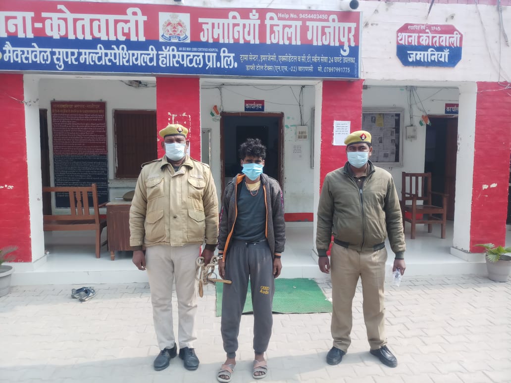 चौकी क्षेत्र रेलवे स्टेशन जमानियां नई बाजार से मुखबिर की सूचना पर गिरफ्तार कर लिया। उसके कब्जे से थाना झूंसी क्षेत्र जनपद प्रयागराज से ट्रैक्टर नं.यूपी 67 ई 4801 को बरामद किया गया।