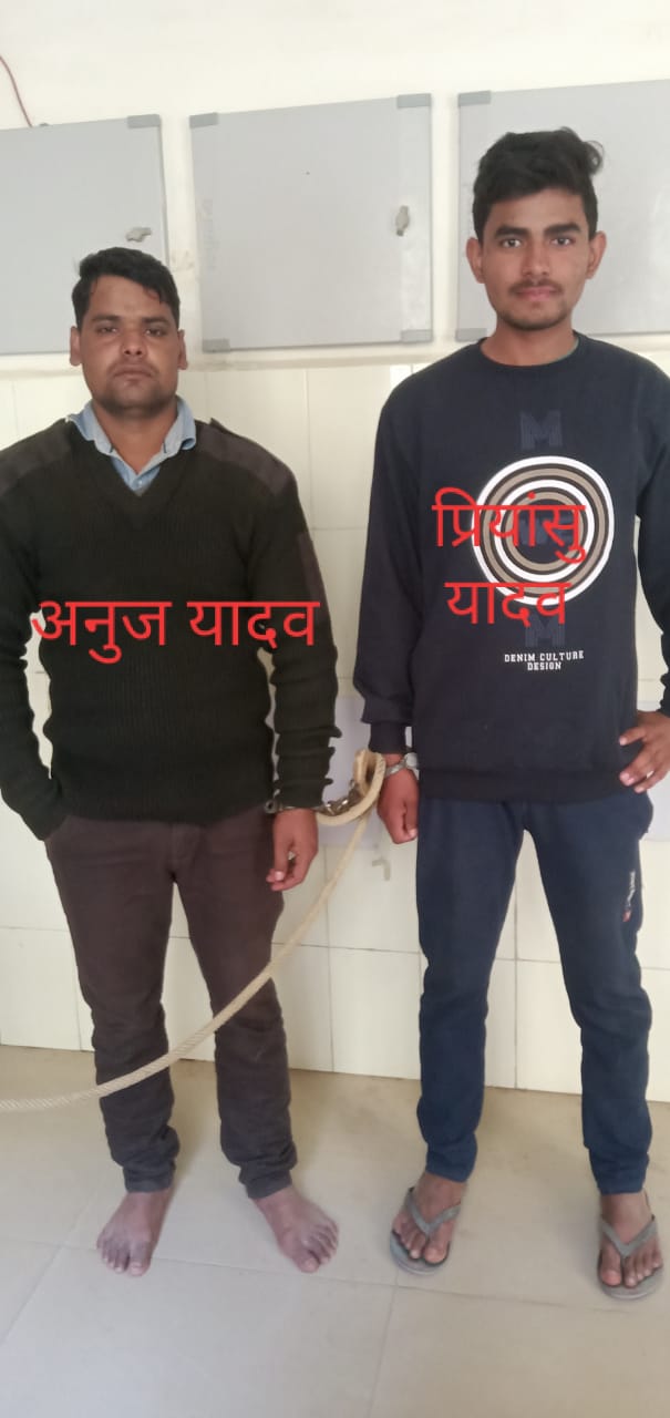 गिरफ्तार अभियुक्तों में अनुज यादव पुत्र राजदेव यादव निवासी रामपुर पतारी थाना दुल्लहपुर जनपद गाजीपुर तथा प्रियांशू सिंह उर्फ कल्लू पुत्र अनीरुद्ध सिंह निवासी कोडरी घुरहावंन्धा थाना मरदह जनपद गाजीपुर हैं। इनके पास से मोटर साइकिल यूपी 50जे 3188 स्पेण्डर प्लस व एक-एक अदद देशी तमंचा 315 बोर व एक-एक अदद् जिन्दा कारतूस बरामद हुआ। जिसके सम्बन्ध में थाना दुल्लहपुर जनपद गाजीपुर पर अभियोग पंजीकृत किया गया। ये गैगेस्टर अधि. में वांच्छित अभियुक्त थे ।
