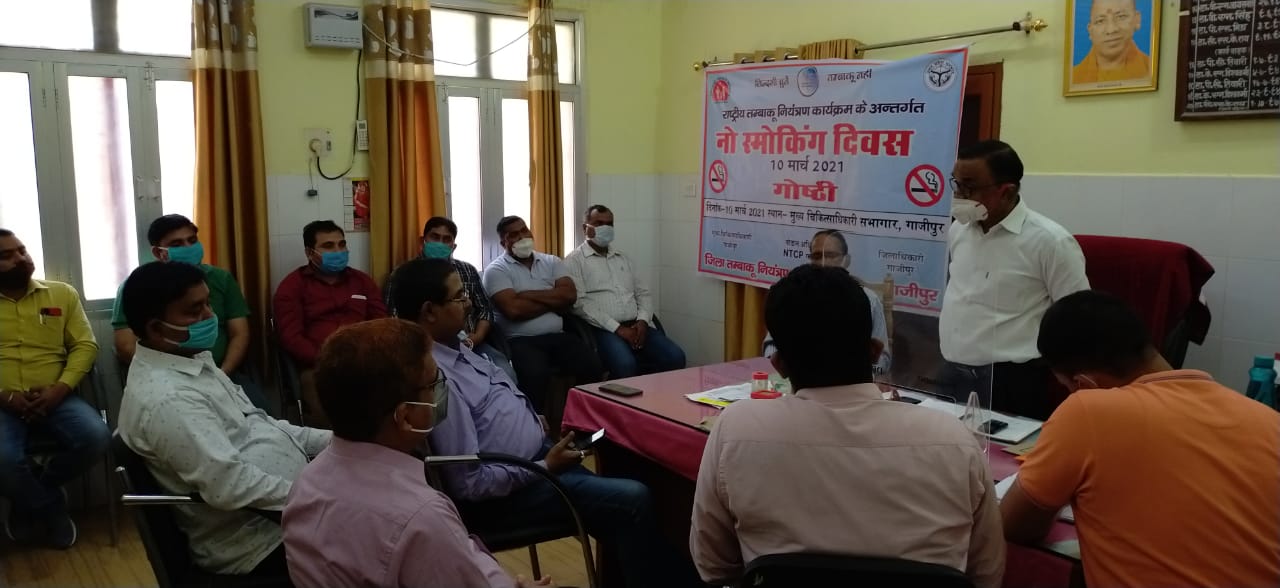 गाजीपुर। धूम्रपान छोड़ने को प्रेरित करने के लिए प्रति वर्ष मार्च के दूसरे बुधवार को ‘धूम्रपान निषेध दिवस’ मनाया जाता है। इसका मुख्य उद्देश्य सिगरेट और दूसरे जरिए से तंबाकू सेवन से स्वास्थ्य पर बुरे प्रभावों के बारे में लोगों को जागरुक करना है। मुख्य चिकित्सा अधिकारी कार्यालय में सीएमओ डॉ जी सी मौर्य की अध्यक्षता में ‘धूम्रपान निषेध दिवस’ गोष्ठी का आयोजन किया गया। गोष्ठी में विभाग से जुड़े सभी अधिकारी और कर्मचारी शामिल होकर धूम्रपान से होने वाले नुकसान और बचाव के उपाय बताये। डॉ केके सिंह ने बताया कि धूम्रपान निषेध दिवस की थीम इस बार शासन के द्वारा ‘मुस्कान’ रखी गयी है ताकि लोग इससे छुटकारा पाकर मुस्कुराते नजर आयें।
