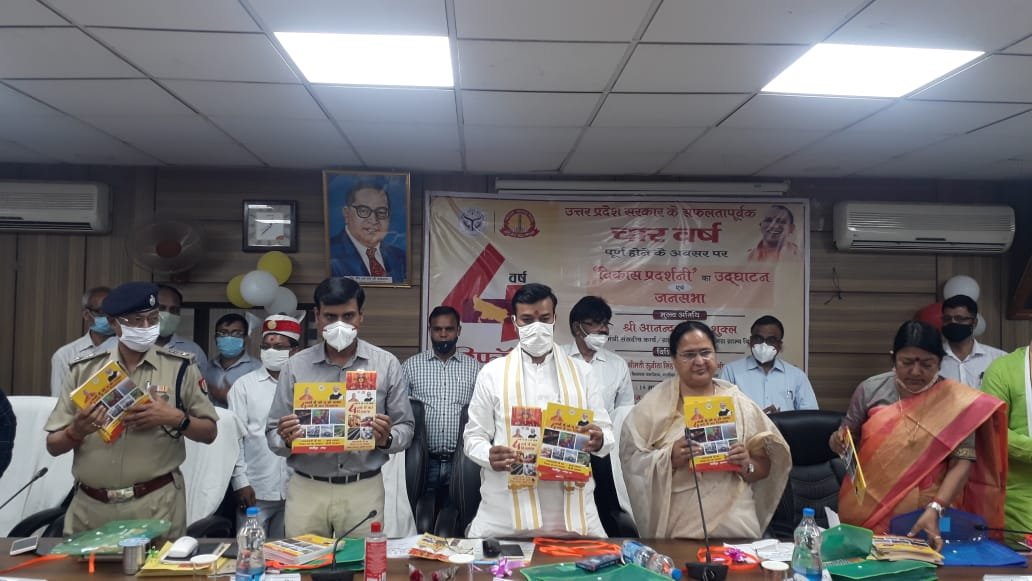 कार्यक्रम को संबोधित करते हुए प्रभारी मंत्री ने, आज प्रदेश सरकार के सफलतापूर्वक 4 वर्ष पूर्ण होने पर सभी लोगों को बधाई दी एवं कहा कि प्रदेश सरकार ने 4 वर्षों में प्रदेश का कायाकल्प किया है। उन्होंने कहा कि केंद्र व प्रदेश सरकार ने गरीब, किसान मजदूरों, निराश्रित व्यक्तियों के लिए अनेक कल्याणकारी योजनाएं संचालित की हैं जिनका सीधा लाभ उन्हें मिल रहा है। उन्होंने कहा कि प्रदेश सरकार द्वारा कानून व्यवस्था, स्वास्थ्य व्यवस्था सहित अन्य सुविधाओं को बेहतर किया गया है और अराजक तत्वों के खिलाफ कड़ी कार्यवाही करते हुए भयमुक्त वातावरण कायम किया गया है। उन्होंने कहा कि उत्तर प्रदेश सरकार ने चहुंमुखी विकास किया है।