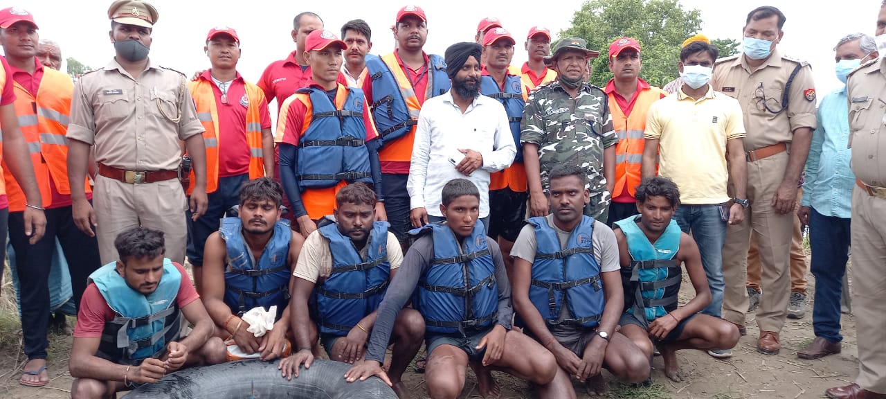 यह घटना तहसील कलीनगर चौकी रमनगरा थाना माधोटांडा क्षेत्र में रविवार को देखने को मिली। जानकारी मिलते ही एसडीएम कलीनगर, सीओ पूरनपुर सहित एसएसबी नगरिया कट कैम्प के जवानों ने जान पर खेलकर शारदा नदी में फंसे छह लोगों को बचाया। काफी मशक्कत के बाद त्र डब्ल्यू यादव पुत्र वीरू यादव उम्र 18 वर्ष वीर खेड़ा,अरविंद यादव पुत्र श्याम लाल यादव उम्र 20 वर्ष माधोटांडा,राहुल यादव पुत्र श्याम लाल यादव उम्र 20 वर्ष, कल्याण यादव पुत्र जय सिंह यादव उम्र 26 वर्ष,ओमकार पाल पुत्र तेज सिंह यादव उम्र 30 साल, नन्हक सिंह उम्र 26 साल इत्यादि लोगों को नदी से मोटर बोट की सहायता से बाहर निकाला गया।