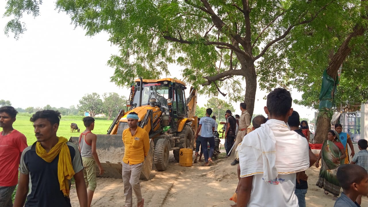 उच्च न्यायालय के आदेश पर तहसीलदार जखनियां जेसीबी व भुडकुड़ा, दुल्लहपुर तथा शादियाबाद थाने की पुलिस टीम के साथ पहुंचे और जेसीबी की मदद से अवैध कब्जे को हटवा दिया।