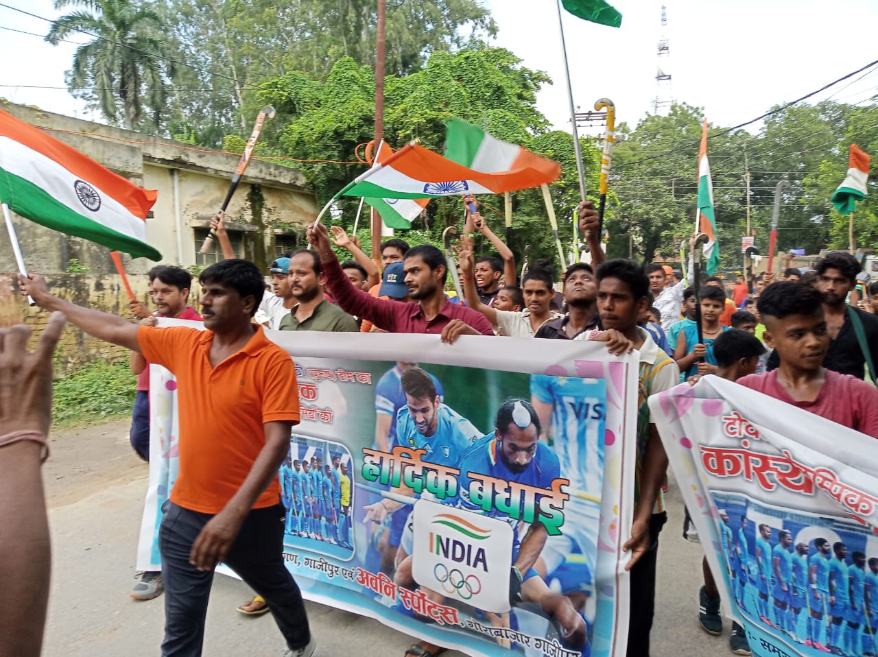 भारतीय हॉकी टीम के कांस्य पदक जीतने पर निकाला विजय जुलूस