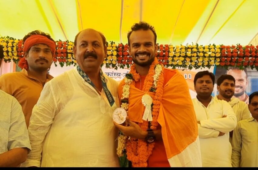 गाजीपुर। टोक्यो ओलंपिक में भारतीय हॉकी टीम के कांस्य पदक विजेता ललित उपाध्याय का जनपद के सैदपुर क्षेत्र के करमपुर स्थित मेघबरन सिंह हॉकी स्टेडियम में गुरुवार को फूलमालाओं से भव्य स्वागत किया गया।