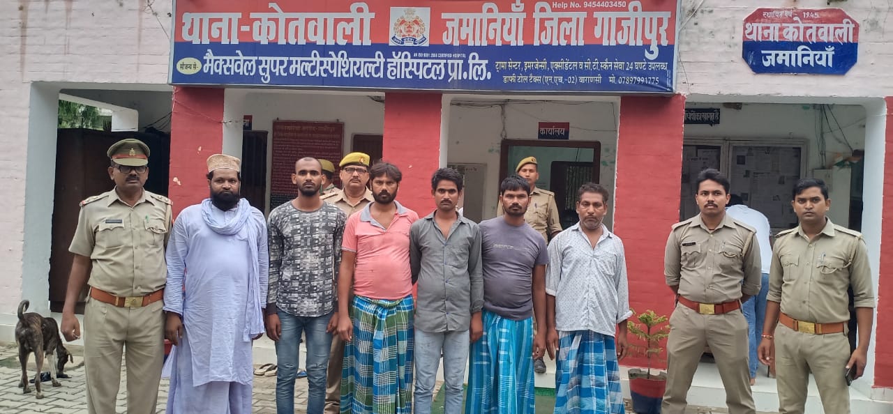 गाजीपुर। जमानियां थाना पुलिस द्वारा 165 किलो प्रतिबन्धित मांस के साथ छह अभियुक्तों को गिरफ्तार किया गया।