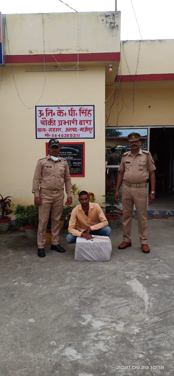 अपराध एवं अपराधियों की गतिविधियों पर अंकुश लगाने के क्रम में उपनिरीक्षक कृष्ण प्रताप सिंह मय हमराह अंकित सिंह, क्षेत्र में मौजूद थे। उसी दौरान मुखबिर की सूचना पर भतौरा घाट के पहले रविदास मन्दिर के पास से अभियुक्त मिथिलेश सिंह चौहान पुत्र सूर्यबली सिंह चौहान निवासी ग्राम दलपतपुर थाना गहमर गाजीपुर के पास से 90 शीशी ब्ल्यू लाइम देशी शराब बरामद हुआ। इसके सम्बन्ध मे थाना पर आबकारी अधि. का अभियोग पंजीकृत कर अभियुक्त के विरूद्ध विधिक कार्यवाही करते हुए जेल भेंज दिया।