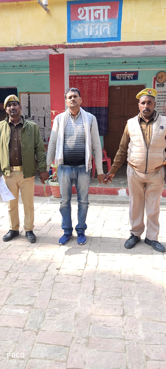 मुखबिर की सूचना पर पुलिस टीम ने अभियुक्त सुजीत प्रजापति पुत्र धर्मराज प्रजापति निवासी गौरा थाना सादात जिला गाजीपुर को अभियुक्त के घर पर दबिश देकर गिरफ्तार किया। गिरफ्तार अभियुक्त के विरुद्ध नियमानुसार कार्यवाही करते हुए जेल भेंज दिया।