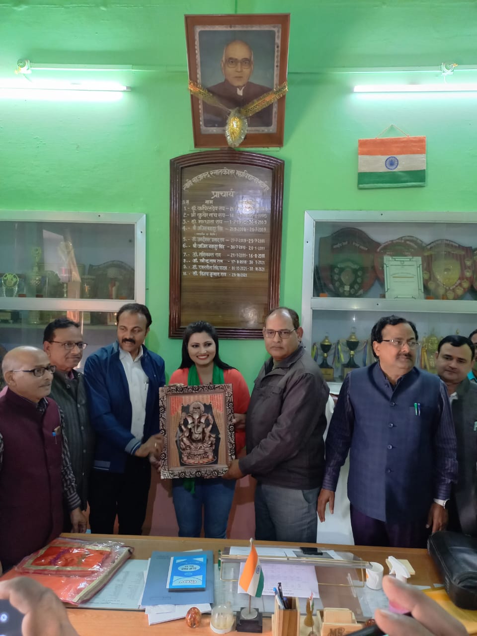 गाजीपुर। व्यावसायिक पत्रकारिता में जानी मानी हस्ती तथा इलेक्ट्रॉनिक मीडिया की शीर्षस्थ ऐंकर चित्रा त्रिपाठी आज अपने विशेष कार्यक्रम के तहद गाजीपुर पहंची। आजतक के कार्यक्रम में, स्वामी सहजानंद पीजी कॉलेज पहुंचने पर महाविद्यालय परिवार द्वारा उन्हें मोमेंटो तथा शाल प्रदान कर सम्मानित किया गया।