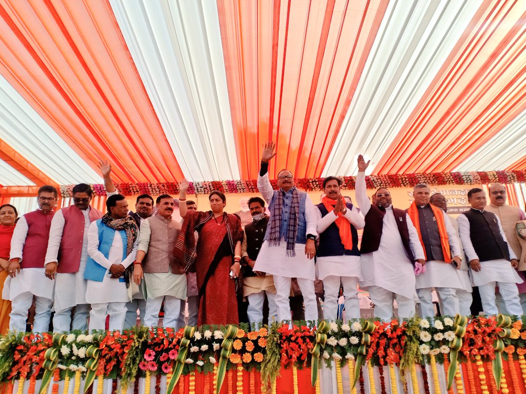 गाजीपुर। भाजपा के जन विश्वास यात्रा को हरी झंडी दिखाकर शुभारंभ करने पहुंची केंद्रीय मंत्री स्मृति ईरानी का नेताओं ने जोरदार स्वागत किया। मंत्री स्मृति ईरानी ने सुसज्जित मंच से विरोधियों पर कसकर निशाना साधा और झंडी दिखाकर यात्रा का शुभारंभ किया।