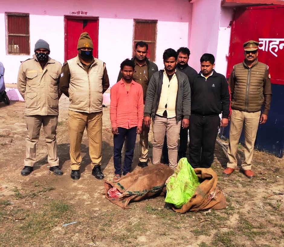 गो मांस के साथ तीन अभियुक्त गिरफ्तार