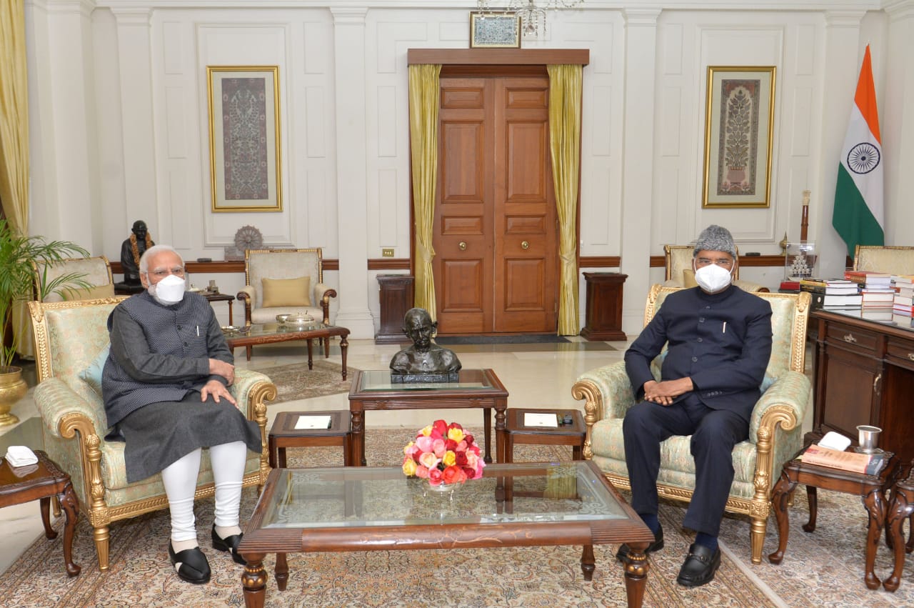 वहीं प्रधानमंत्री नरेंद्र मोदी राष्ट्रपति रामनाथ कोविंद से मिलने राष्ट्रपति भवन पहुंचे हैं।