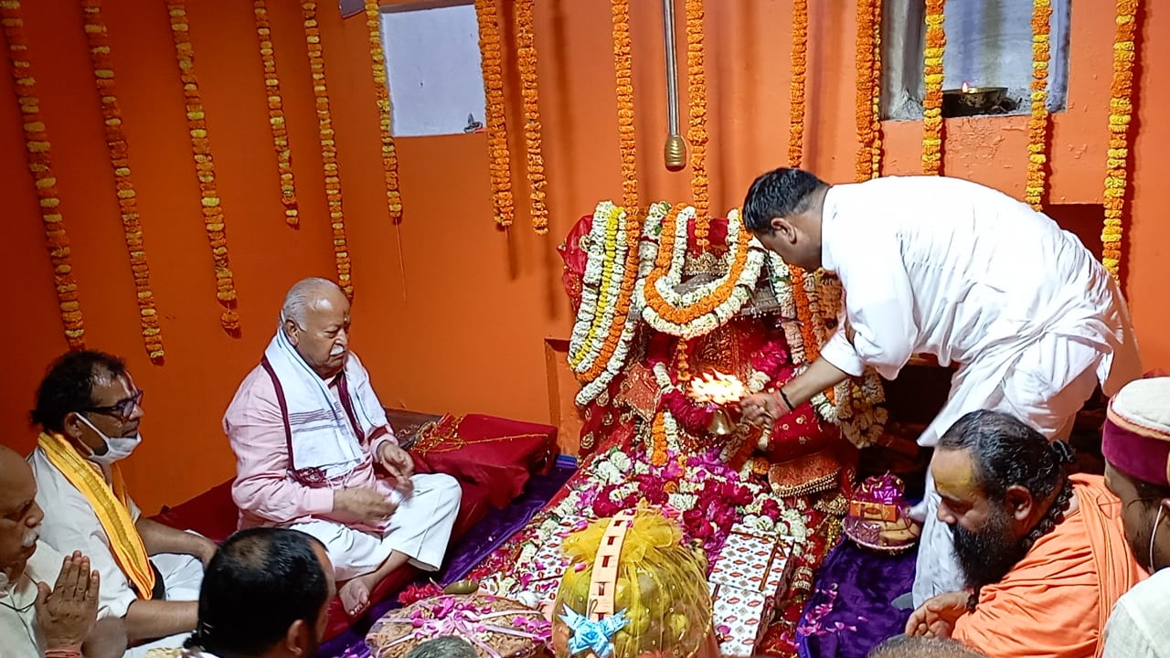 सरसंघचालक श्री भागवत जी का निजी धार्मिक कार्यक्रम रहा जिसमें उन्होंने सिद्धपीठ की अधिष्ठात्री देवी वृद्धम्बिका माता (बुढ़िया माई) का दर्शन पूजन कर विधि विधान से अनुष्ठान संपन्न किया। पंचपूजा के क्रम में उन्होंने शिव पूजा, शक्ति पूजा, गौ पूजा, कूप पूजा (गंगा पूजन) और पंच पल्लव पूजन किया।