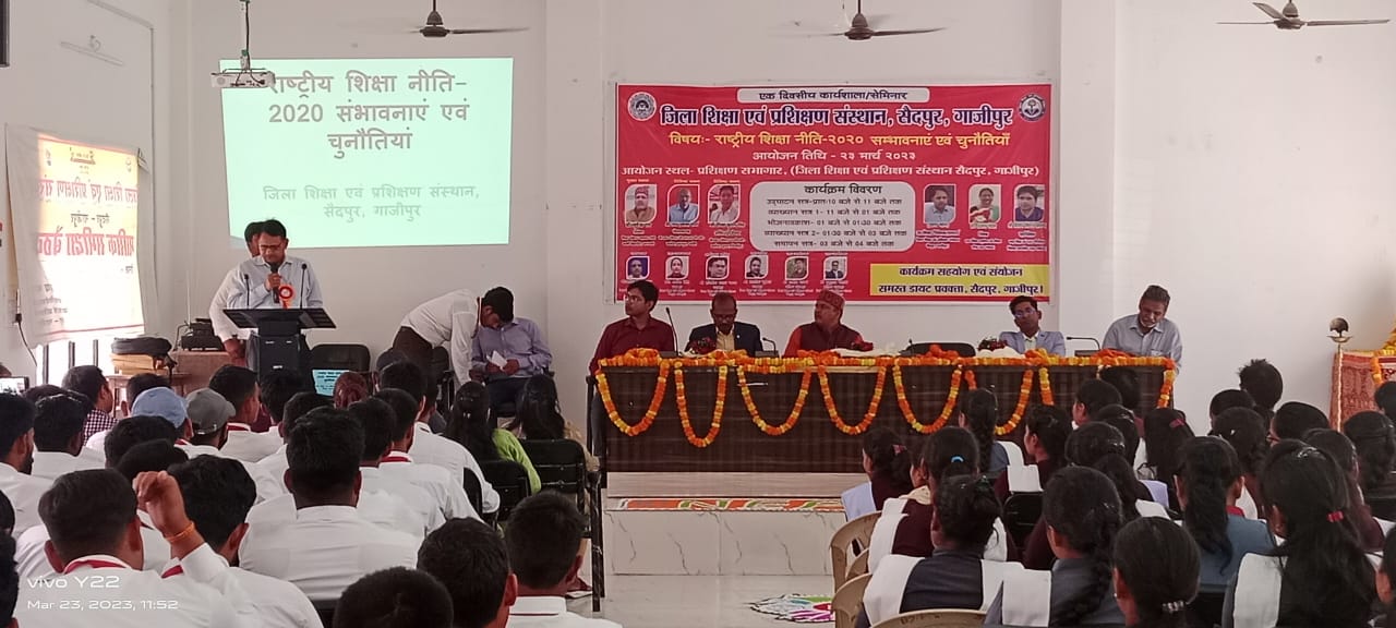 गाजीपुर । राष्ट्रीय शिक्षा नीति-2020 : संभावनाएं, चुनौती एवं समाधान के लिए सुझाव विषय पर एकदिवसीय सेमिनार का आयोजन जिला शिक्षा एवं प्रशिक्षण संस्थान सैदपुर उपशिक्षा निदेशक उदयभान के निर्देशन में संपन्न हुआ।