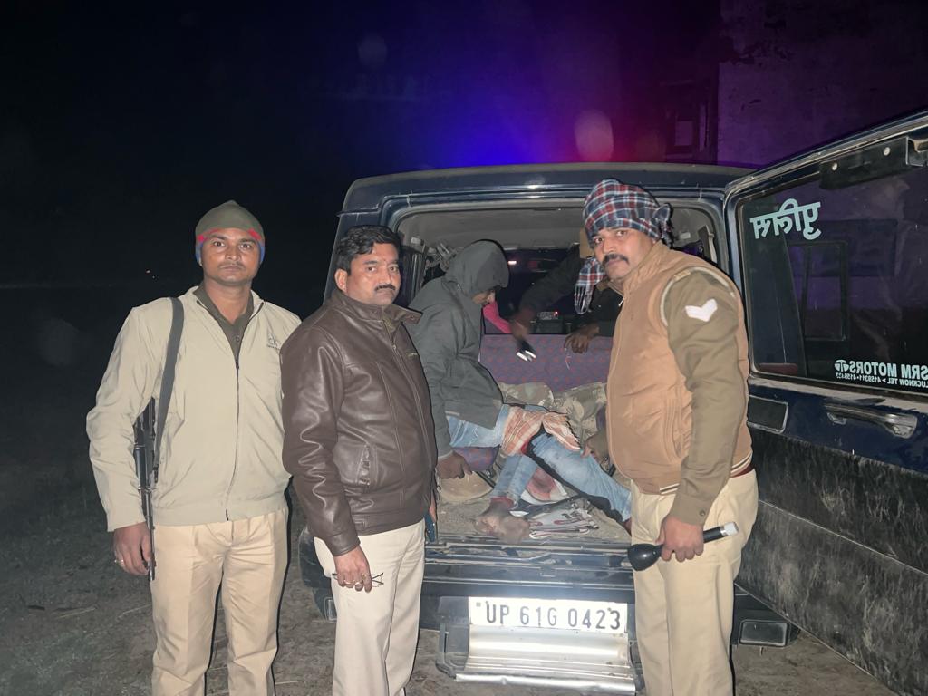 बताया गया कि प्रभारी निरीक्षक दिलदारनगर मय टीम द्वारा थाने पर दर्ज गोवध निवारण अधिनियम की विवेचना के दौरान गिरफ्तार शातिर अभियुक्त सुनील कुमार पुत्र महेंद्र राम निवासी मेरे जेवरी मेरे थाना दुर्गावती जिला कैमूर बिहार ने अपने द्वारा एकत्रित किए गए तीन गोवंश बरामद कराने की बात बताई। इस पर बुधवार को पुलिस टीम उसे लेकर उसके बताए स्थान ग्राम रक्सहा के पुराने कांशीराम आवास के पास पहुंची। वहां एक कमरे में तीन गोवंश मौजूद मिले। बरामदगी के दौरान अभियुक्त ने अपने द्वारा वहां छिपा कर रखे अवैध असलहा निकाल लिया और दिखाते हुए बाहर बगीचे की तरफ भागने लगा। यह देखकर, पुलिस टीम द्वारा घेराबंदी की गई तो अभियुक्त द पुलिस टीम पर फायर करने लगा, जवाबी कार्यवाही में अभियुक्त के पैर में गोली लगी और पुलिस ने उसे गिरफ्तार कर लिया। उसे इलाज हेतु सामुदायिक स्वास्थ्य केंद्र भदौरा सेवराई भेजा गया। घायल अभियुक्त पर आठ अपराधिक मामले दर्ज हैं।