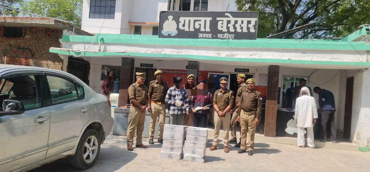 बताया गया कि प्रभारी बरेसर शैलेन्द्र प्रताप सिंह व स्वाट/सर्विलांस टीम को सूचना मिली कि कुछ लोग अवैध शराब लादकर कासिमाबाद की तरफ से सर्विस रोड (पूर्वांचल एक्सप्रेस वे) पकड़कर बिहार जाने की फिराक में है। इस सूचना पर सक्रिय पुलिस टीम ने रविवार की शाम पूर्वांचल एक्सप्रेसवे अण्डर पास बरेसर सर्विस रोड ग्राम मलिकपुरा बरेसर पर वाहन चेकिंग शुरू कर दी। चेकिंग के दौरान पुलिस टीमों नें जब संदिग्ध चार पहिया वाहन को रोका तो वह पुलिस को देखकर, कार का दरवाजा खोलकर भागना चाहे तो पुलिस ने घेरा बन्दी कर पकड़ लिया।