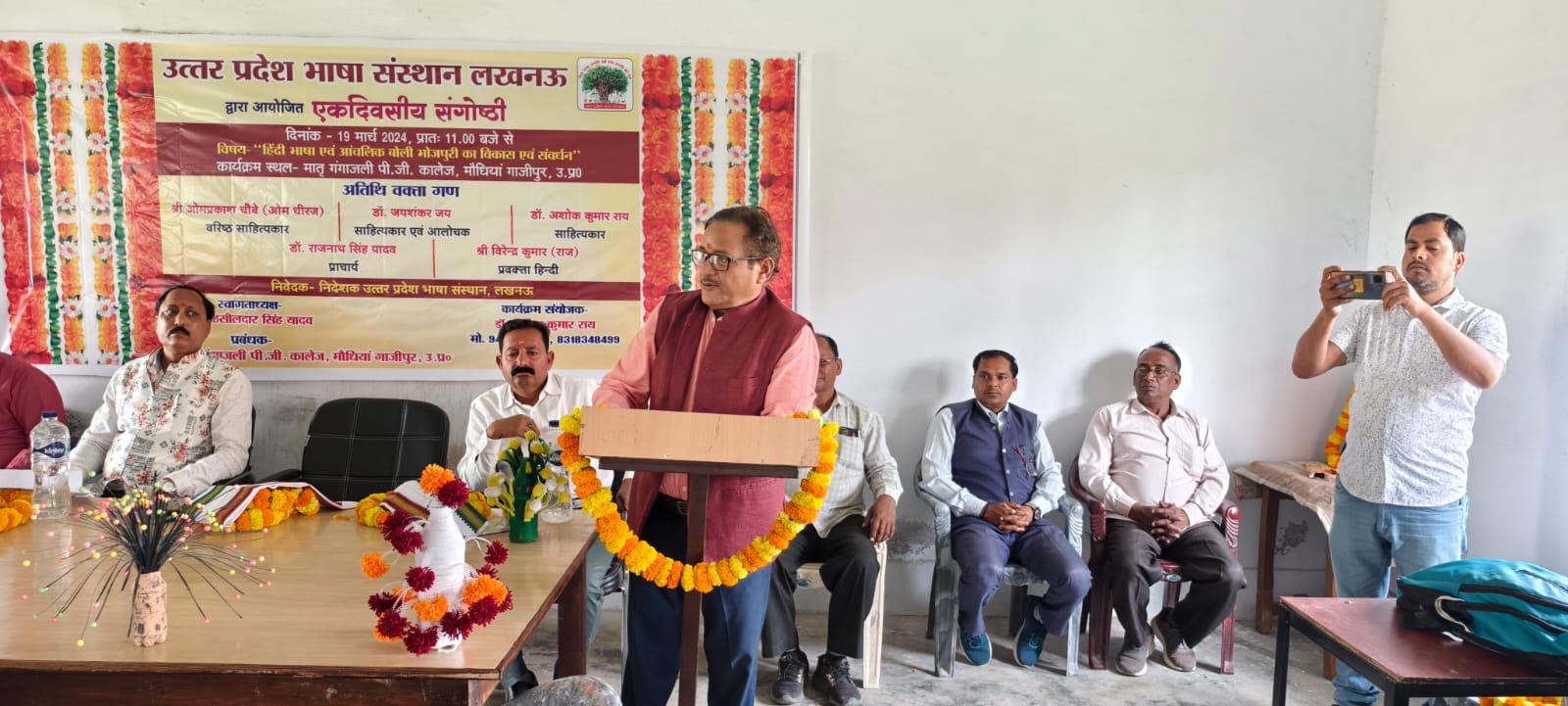 गाज़ीपुर। उत्तर प्रदेश भाषा संस्थान लखनऊ के तत्वाधान में मातृ गंगाजलि महाविद्यालय मौधियां में “हिंदी भाषा में आंचलिक बोली भोजपुरी का महत्व” विषयक” संगोष्ठी मंगलवार को सम्पन्न हुई।