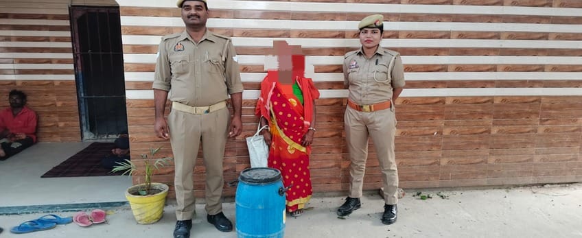 मादक पदार्थ की अवैध खरीद फरोख्त व तस्करी के विरूद्ध चलाये जा रहे अभियान के तहत गुरुवार को उपनिरीक्षक दया शंकर सिंह मय हमराह सहेडी मोड़ पर संदिग्ध व्यक्ति/वाहनों की चेकिंग कर रहे थे। उसी दरम्यान मुखवबीर से सूचना मिली कि जोखनी देवी पत्नी रामलाल बिन्द निवासी कुसुम्ही कला मठिया थाना नन्दगंज जनपद गाजीपुर ,अपने दरवाजे पर आसपास के लोगों को शराब बेच रही है। इस सूचना पर पुलिस टीम वहां पहुंची तो वहां इकठ्ठे हैं हम पुलिस वाले जैसे ही और नजदीक पहुंचे तो वहां से इकठ्ठा लोग पुलिस को देख कर भाग निकले। वहां एक महिला दरवाजे पर बैठी मिली जिसके पास एक प्लास्टिक के गैलन में अवैध शराब थी। उस नीले रंग के गैलन में 30 लीटर कच्ची शराब पायी गयी। महिला को उसके अवैध कार्य का बोध कराते हुए महिला आरक्षी की मदद से समय उसे करीब 17.50 बजे हिरासत पुलिस में लिया गया तथा उसके विरूद्ध आबकारी अधिनियम में अभियोग पंजीकृत कर विधिक कार्यवाही की गयी। गिरफ्तार करने वाली टीम में उपनिरीक्षक दया शंकर सिंह व जयप्रकाश सिंह, मुख्य आरक्षी दीपक वर्मा, आरक्षी विपिन नायक तथा महिला आरक्षी सविता भारती व संगीता पटेल शामिल रहीं।