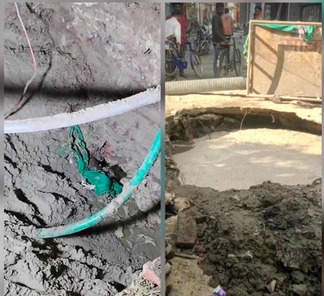 बताते चलें कि शहर के सब्जी मंडी इलाके के आगे के चौराहे पर छह माह पहले सीवेज पाइप लाइन बिछाने के लिये बड़ा गड्ढा खोदा गया था । तब से ही इस व्यस्ततम इलाके के लोगों का गमनागमन वाधित हो गया था। स्थानीय लोगों का आरोप है कि इस गड्ढे को कई बार भरा गया,और कुछ दिन बाद फिर कार्यदायी संस्था ने खोदा। इस दौरान लोगों की पेयजल पाइप लाइन और इलेक्ट्रिकल केबिल भी ध्वस्त हो गयी। इसी बीच कुछ दिन पहले फिर से चौराहे पर सीवेज पाइप लाइन निर्माण के नाम पर फिर 10-15 फिट गहरा गड्ढा खोदा गया जिसमें पानी भर गया। इससे लोगों को आवागमन मे भारी मुसीबत झेलनी पड़ी। इसी बीच बनी हुई सड़क गुरुवार को अचानक धंसने लगी और पानी से भरे गड्ढे के रूप में तब्दील हो गई, और आसपास की सड़क भी धंस गयी।
