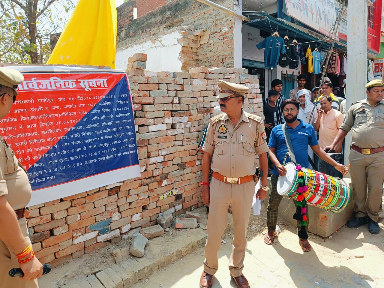 अपराध एवं अपराधियों के विरुद्ध चलाए जा रहे अभियान के तहत गत 08 अप्रैल को प्रभारी निरीक्षक/विवेचक थाना मरदह जनपद गाजीपुर द्वारा प्रेषित आख्या पर पुलिस अधीक्षक द्वारा की गई संस्तुति के आधार पर जिलाधिकारी द्वारा पारित कुर्की आदेश अंतर्गत धारा 14(1) उत्तर प्रदेश गिरोह बंद एवं समाज विरोधी क्रियाकलाप निवारण अधिनियम 1986 के तहत गैंग लीडर/अभियुक्त रेयाज अहमद अंसारी पुत्र अब्दुल मन्नान निवासी वार्ड नं० 11 दक्खिन टोला, बहादुरगंज थाना कासिमाबाद जनपद गाजीपुर की अनुमानित बाजारू कीमत लगभग 06.70 करोड़ की अचल संपत्ति रही। यह सम्पत्ति उसने अपनी पत्नी निकहत परवीन, साले कमाल अहमद पुत्र जियाउद्दीन तथा दामाद एहतशाम पुत्र कलीम अंसारी के साथ एक गिरोह बनाकर लोक व्यवस्था को अस्त-व्यस्त करने तथा अपने व अपने गैंग के सदस्यों लिए आर्थिक, भौतिक व अन्य लाभ प्राप्त करने के उद्देश्य से आपराधिक कार्य तथा समाज विरोधी क्रियाकलापों के द्वारा विगत कुछ वर्षों में अलग-अलग समय मे अर्जित की गयी थी। उन जमीनों को कुर्क कर जब्तीकरण किया गया।